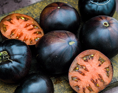 We love these luminescent slicers ripening from bright plum to rich, velvety black blushing brick red as they soften, ripening fully with rich heirloom flavor.
