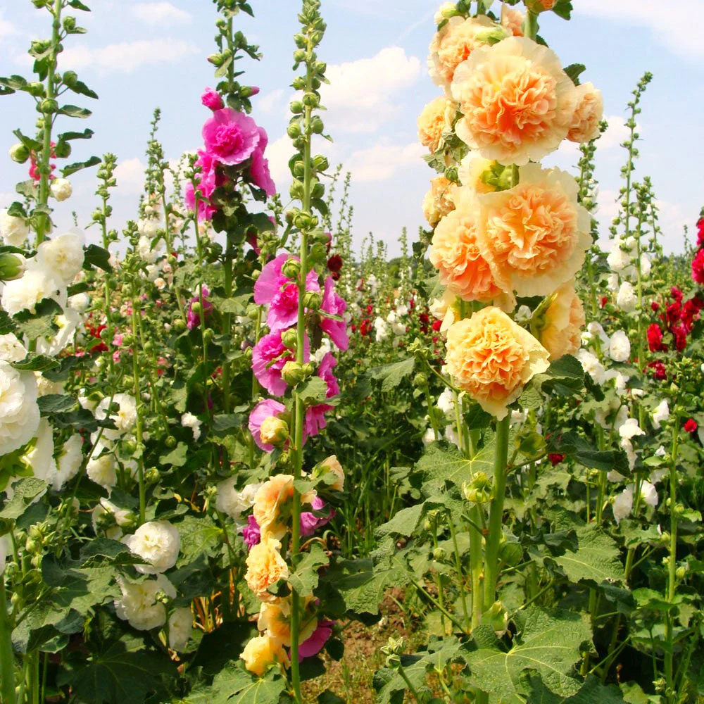 Transform your garden with the timeless elegance of Double Hollyhocks — tall, fragrant, and bursting with layers of vibrant petals. Known as the “Queen of Flowers,” these blooms create a romantic vertical display, adding old-world charm and rich color to any outdoor space. Whether you're lining a walkway, fence, or cottage garden, Hollyhocks deliver beauty that blooms with minimal effort.